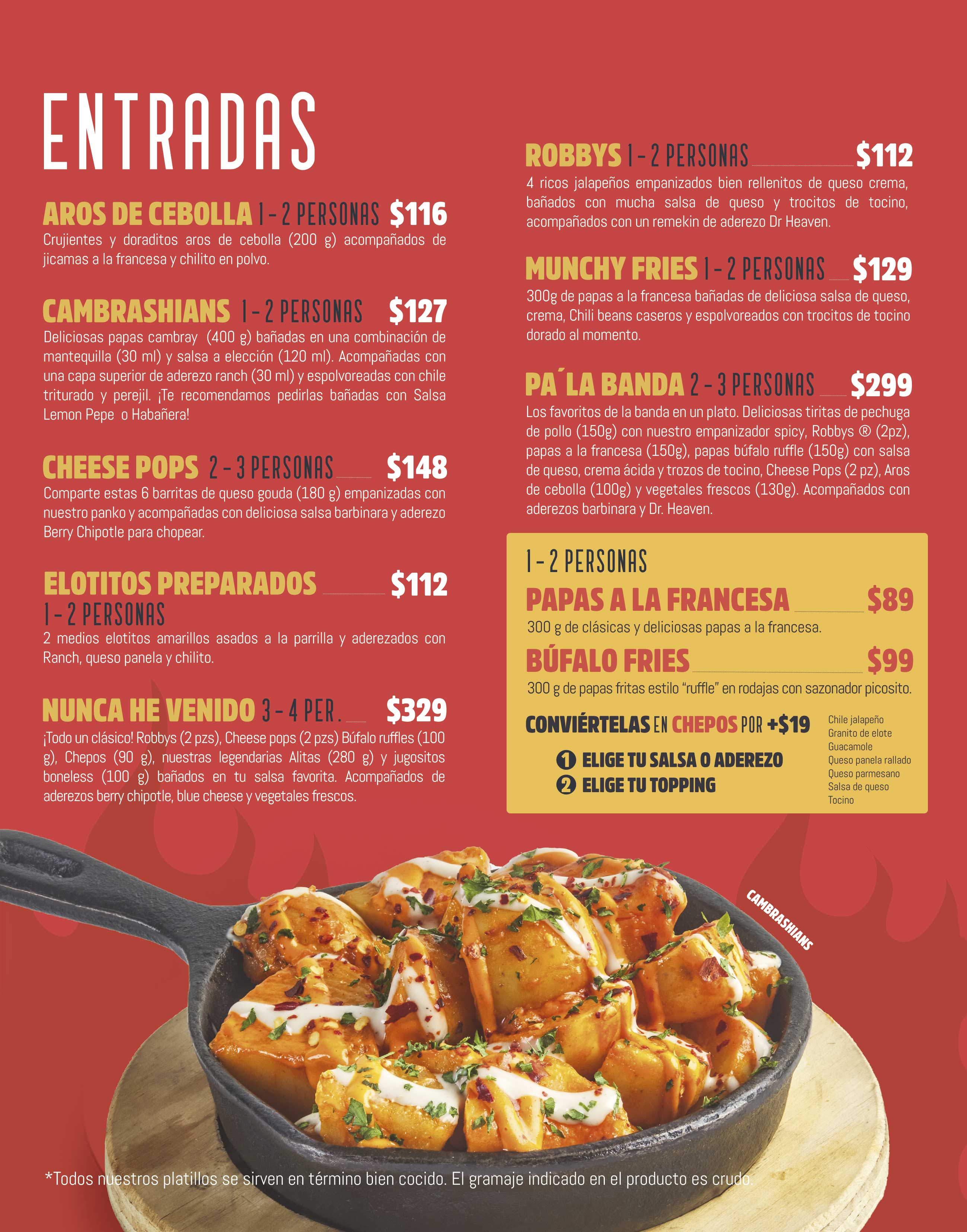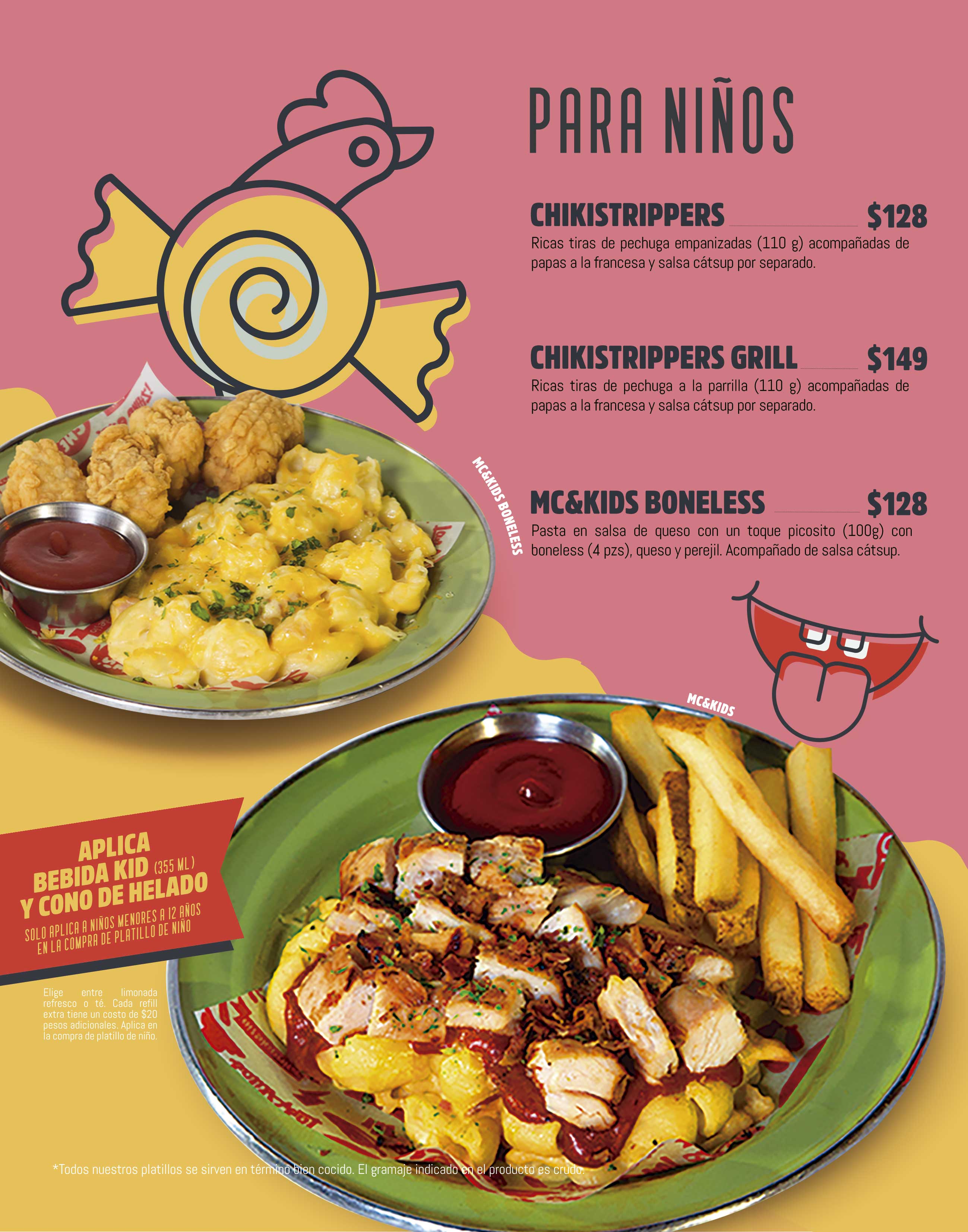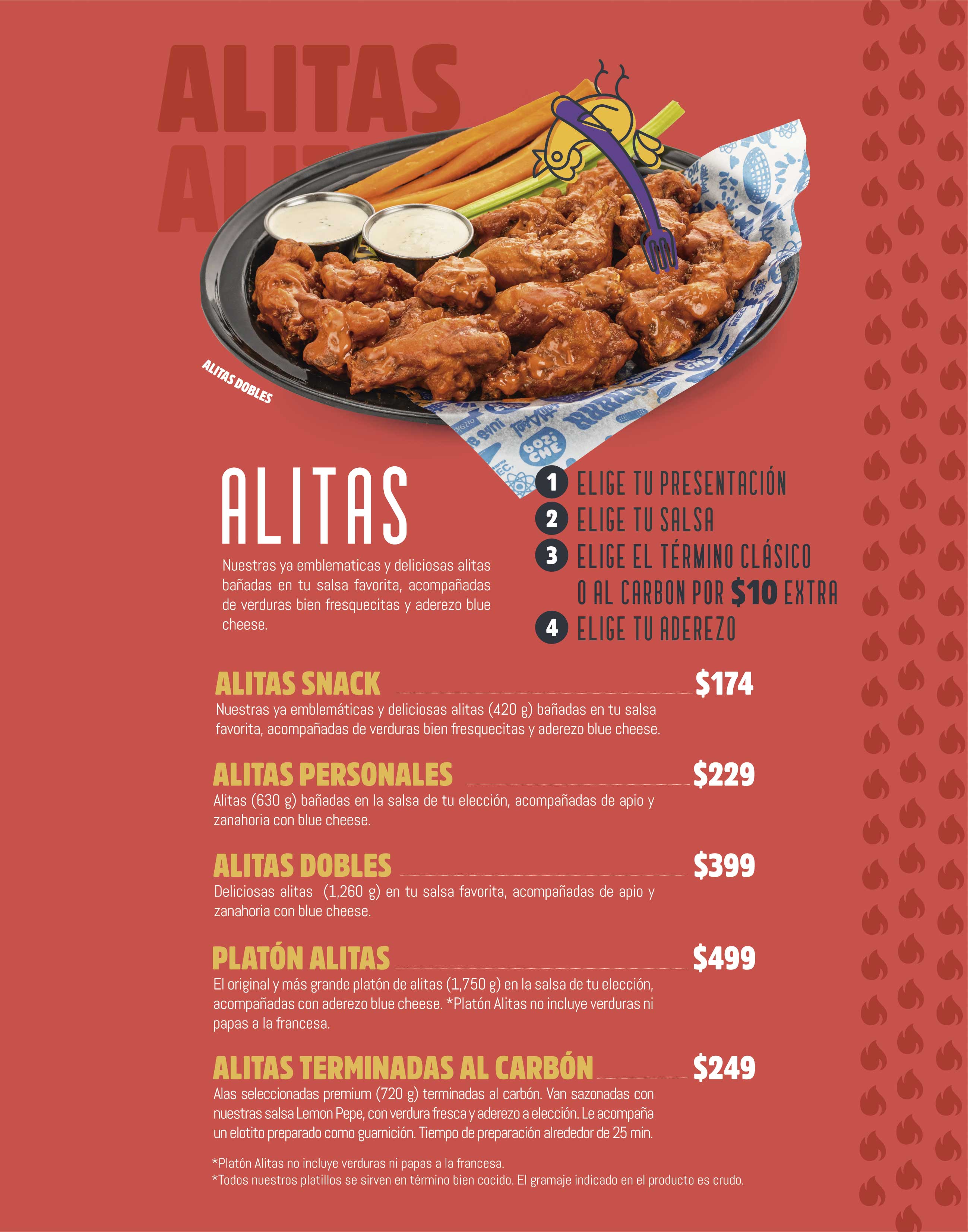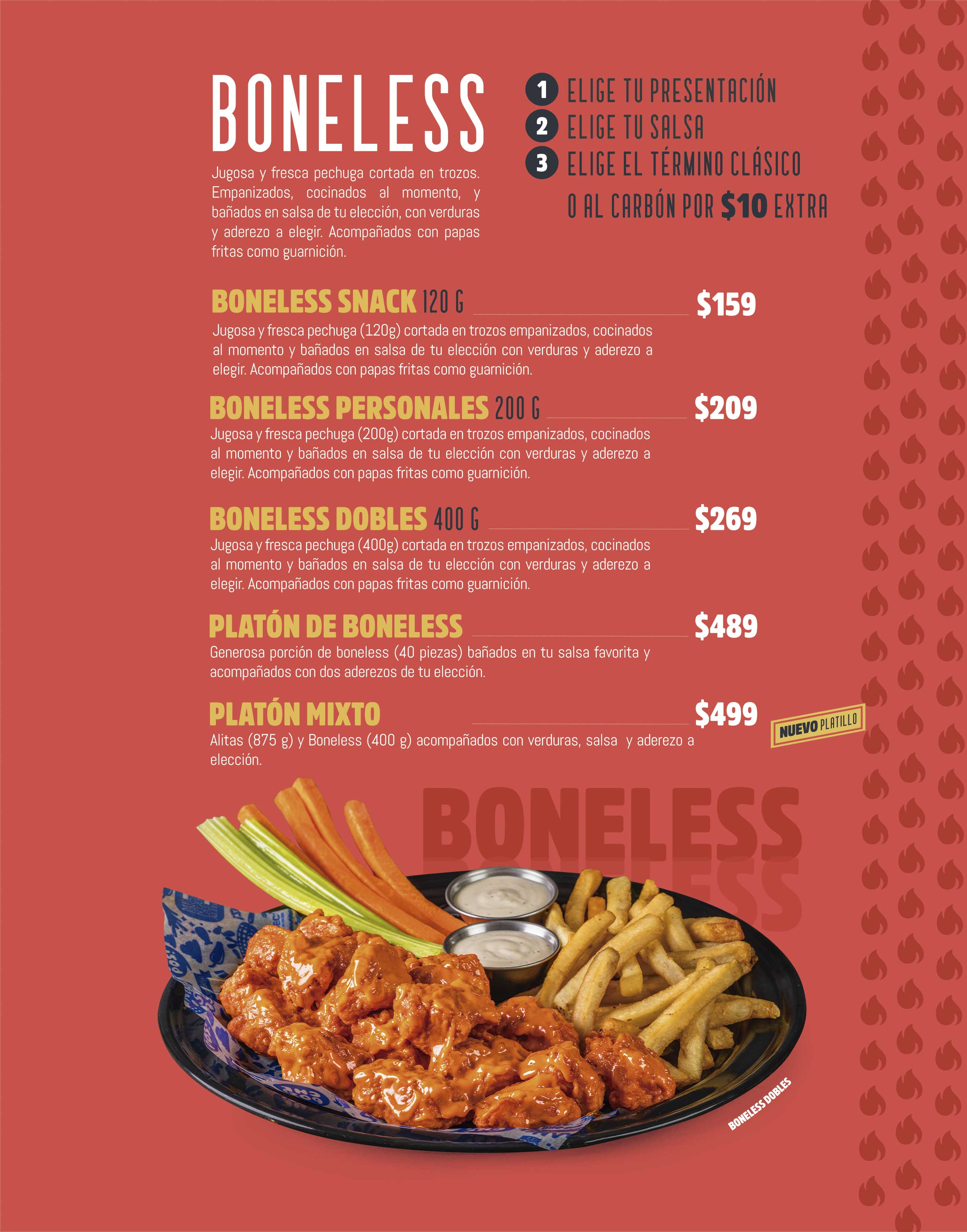 Platón Boneless y Platón Alitas no incluyen papas ni verduras.