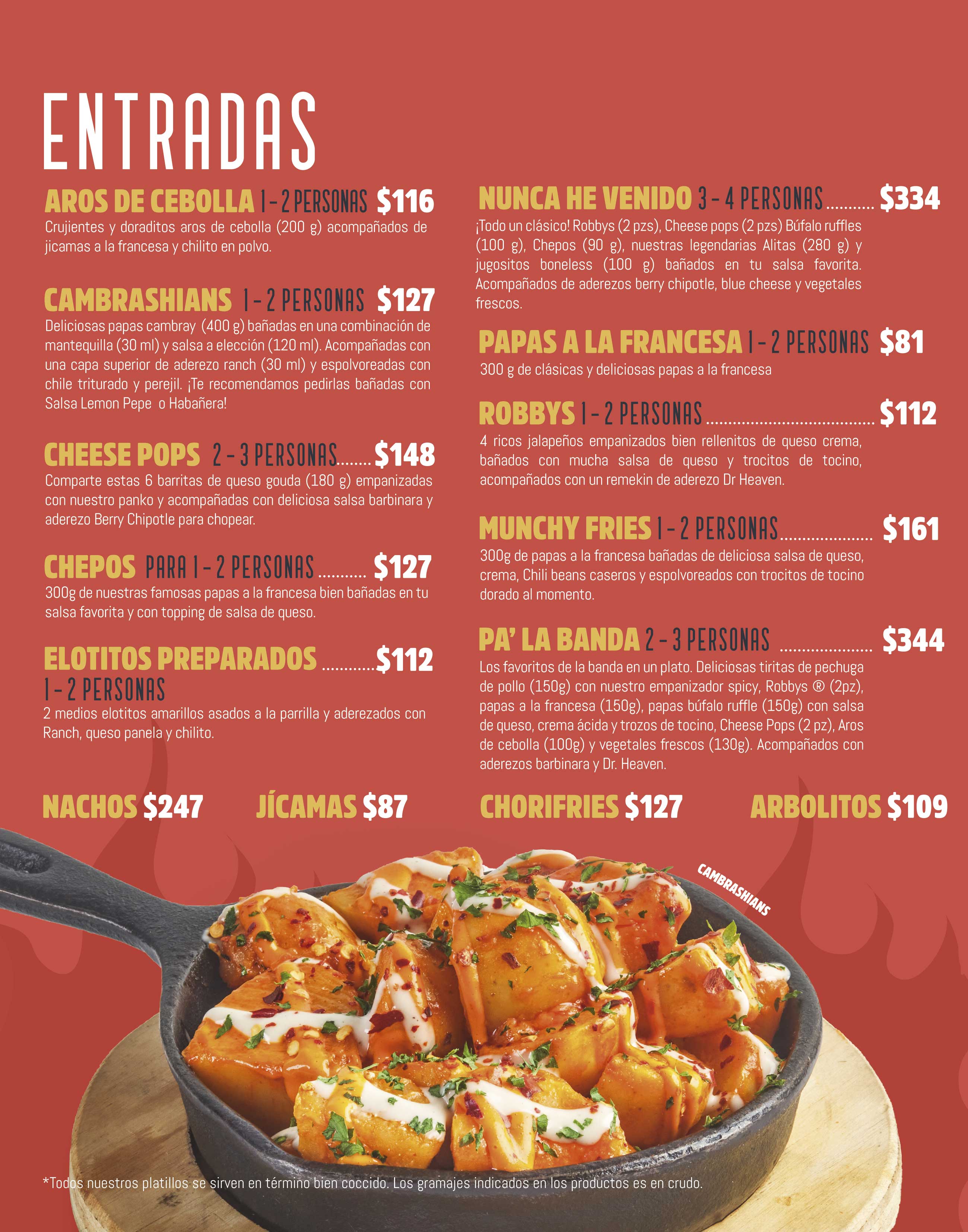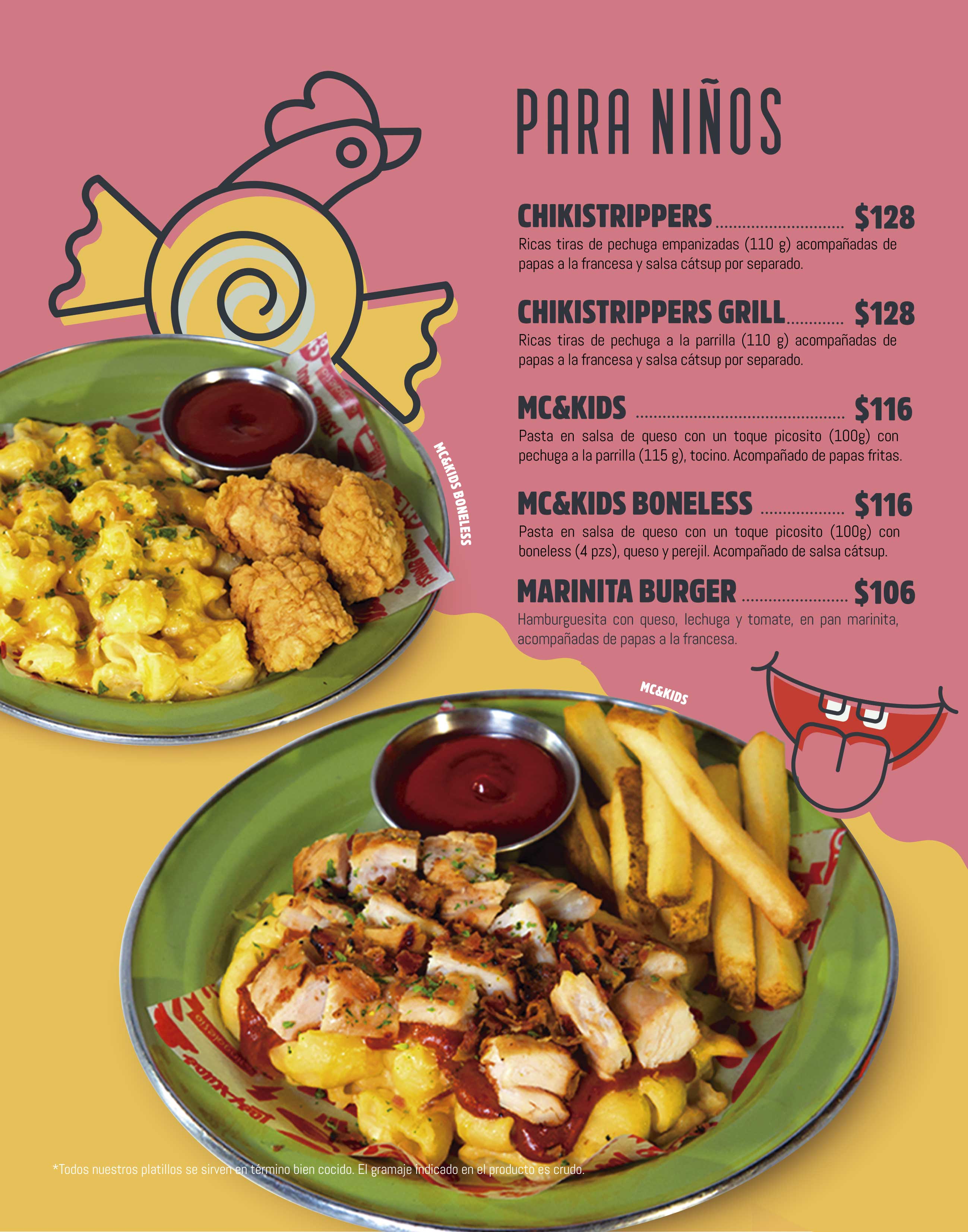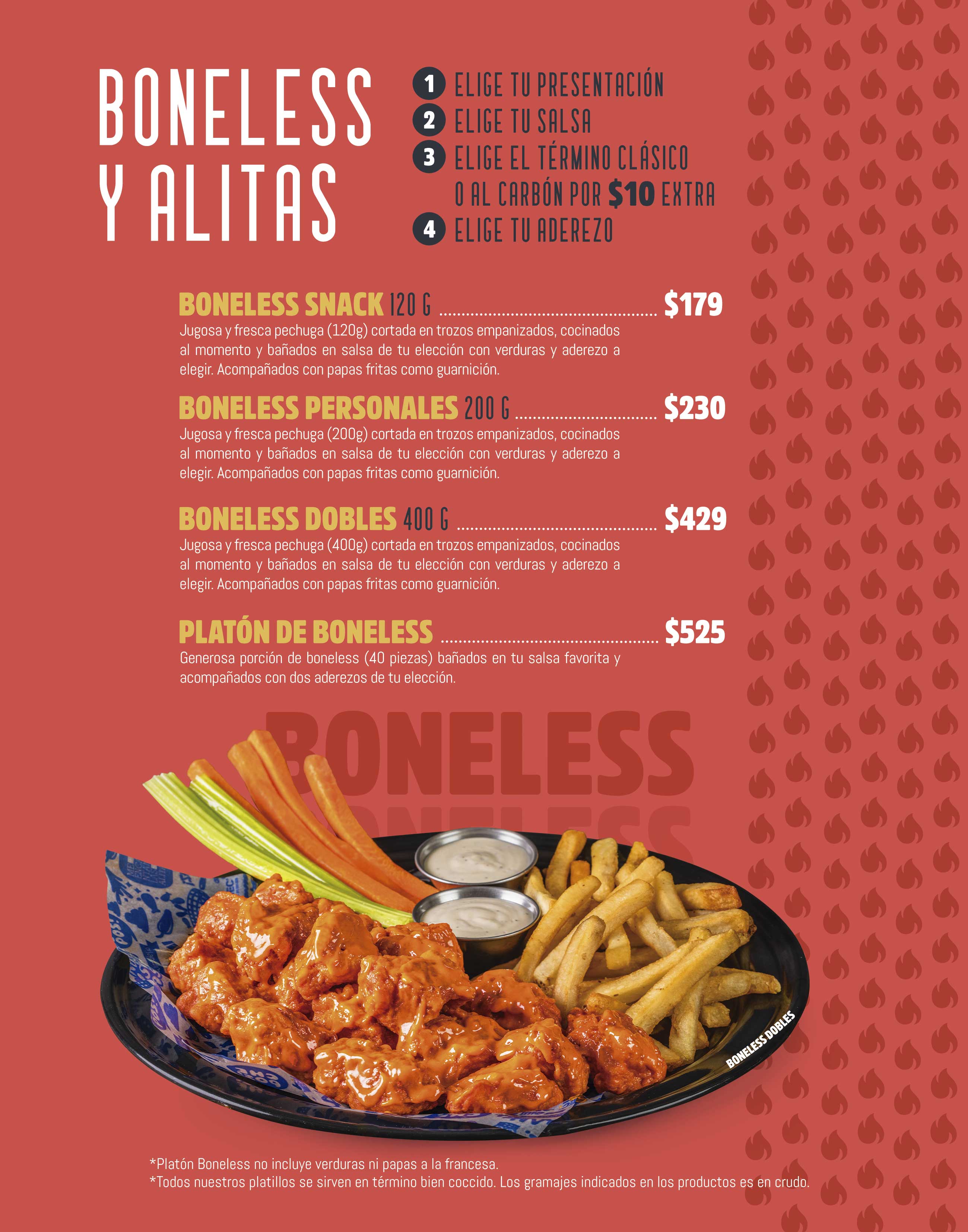 Platón Boneless y Platón Alitas no incluyen papas ni verduras.
