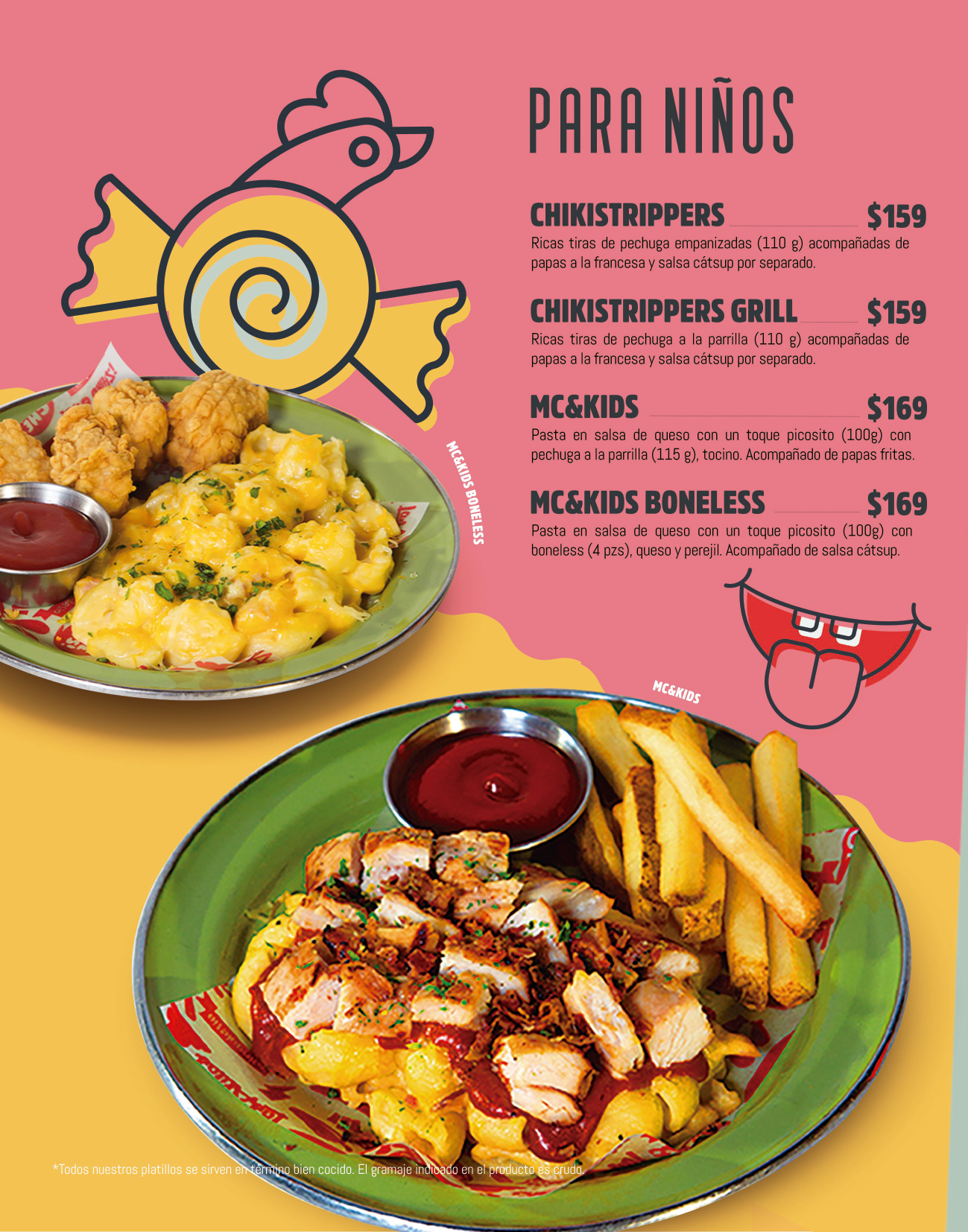 Platón Boneless y Platón Alitas no incluyen verduras ni papas.