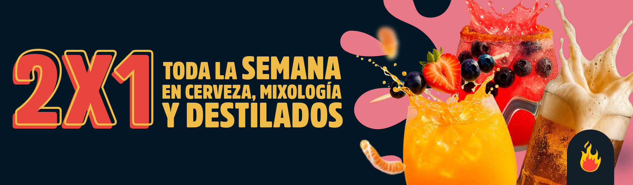 Aplican todas las cervezas de las marcas Indio, Tecate Rojo, Tecate Light, Dos equis Lager, Dos equis ambar, Bohemia Clara, Bohemia Oscura, Bohemia weizen, Tecate 0.0, Heineken, Heineken 0.0, Heineken light, Heineken Silver y Grand Heineken en presentación de botella de 325 y 355 ml; lata de 355 ml y cerveza de barril en vaso de 414 ml, según disponibilidad. Aplican todas las bebidas preparadas con/sin alcohol: Carajillo Shake, Mojito Shical, Piña Colada, Margarita Maracuyá, Margarita Tamarindo, Margarita Fresa y Margarita Mangamoy. Mezcal Fresa, Mezcal Maracuyá, Mezcal Tamarindo, Mezcal Mango, Mocktail Mango Mandarina y Mocktail Kiwi - Maracuyá. Aplican todos los destilados: Whiskey Johnnie Walker Black Label, Whiskey Johnnie Walker Red Label, Whiskey Jack Daniel’s, Whiskey Buchanan’s 12 años, Ron capitán morgan, Ron Bacardi blanco, Ron bacardí mango, Vodka Smirnoff Tamarindo, Vodka Absolute Blue, Mezcal 400 Conejos, Mezcal Ojo de Tigre, Tequila Tradicional, Tequila maestro Dobel Diamante, Tequila Don julio 70, Ginebra Tanqueray, Torres 10, Baileys, Licor 43. Se paga la bebida de mayor precio.