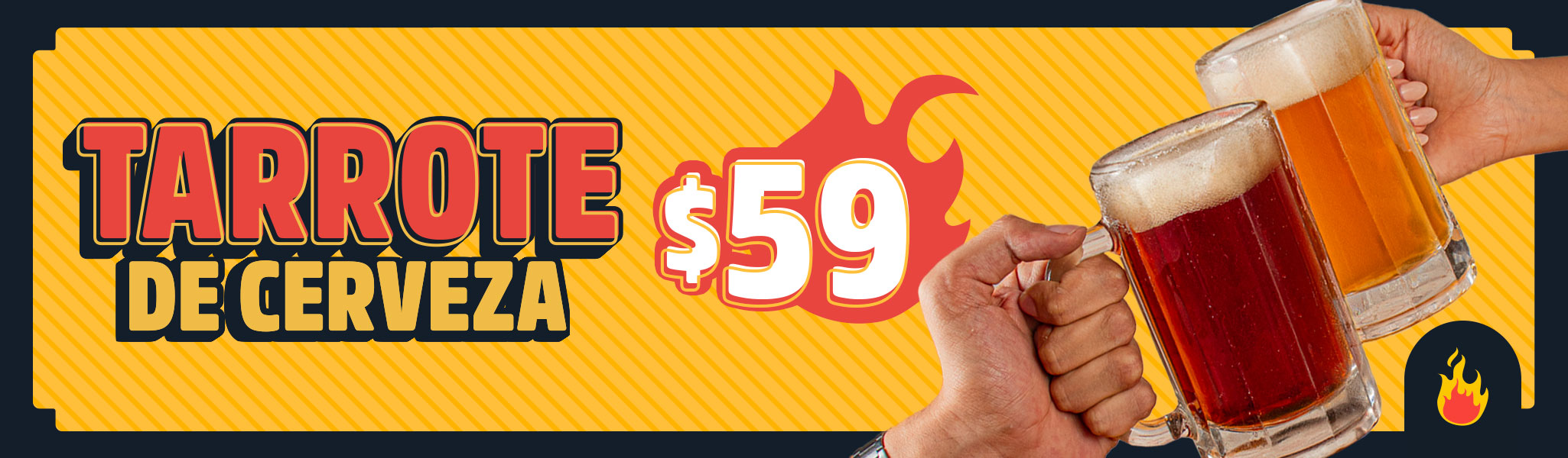 Las cervezas participantes son de las marcas: Indio, Tecate Rojo, Tecate Light o XX Equis Lager en presentación Tarrote de 857ml según a disponibilidad de la sucursa. Promoción limitada a "un (1) tarrote a $59.00 pesos" por invitado.