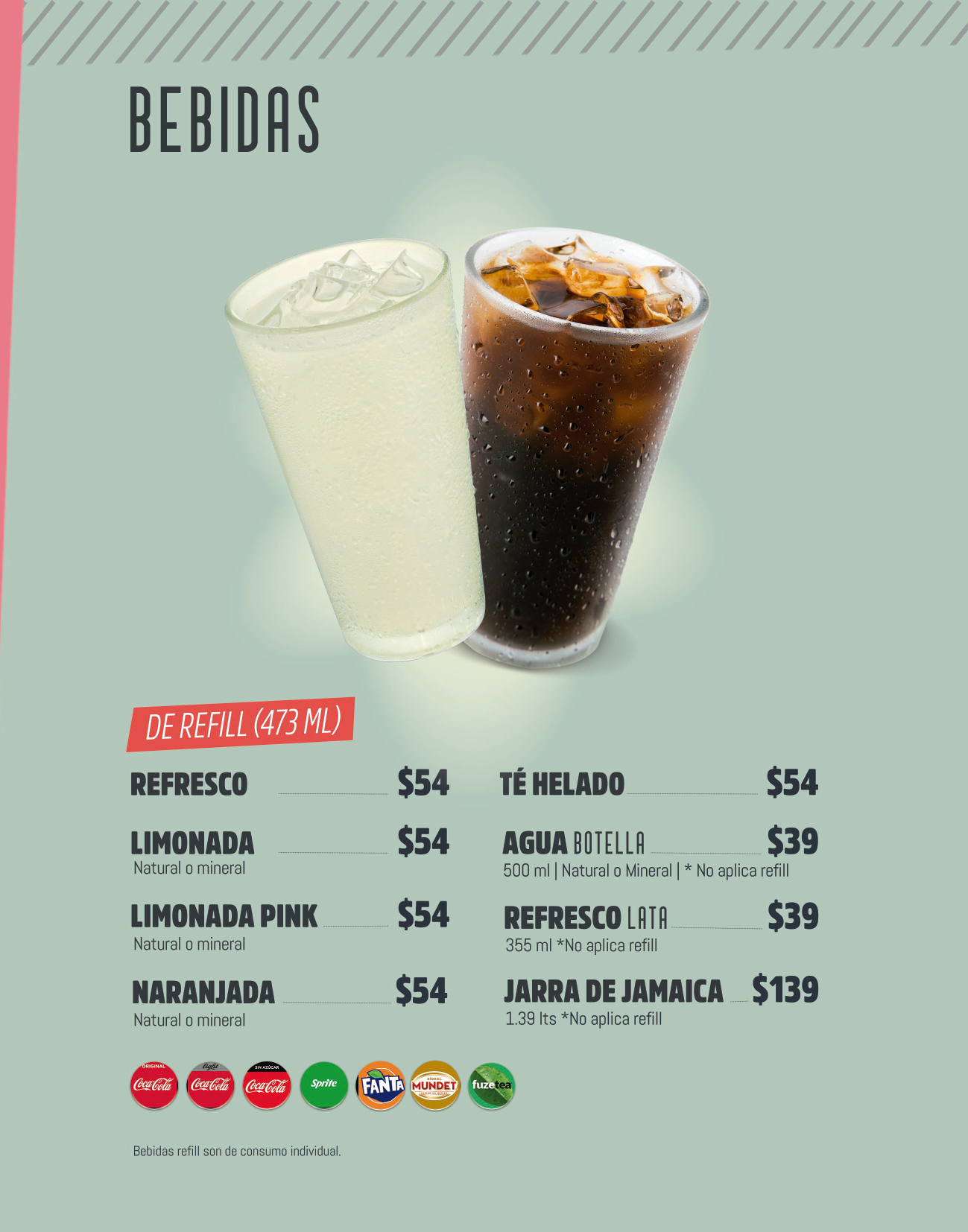 Bebida de refil es individual.