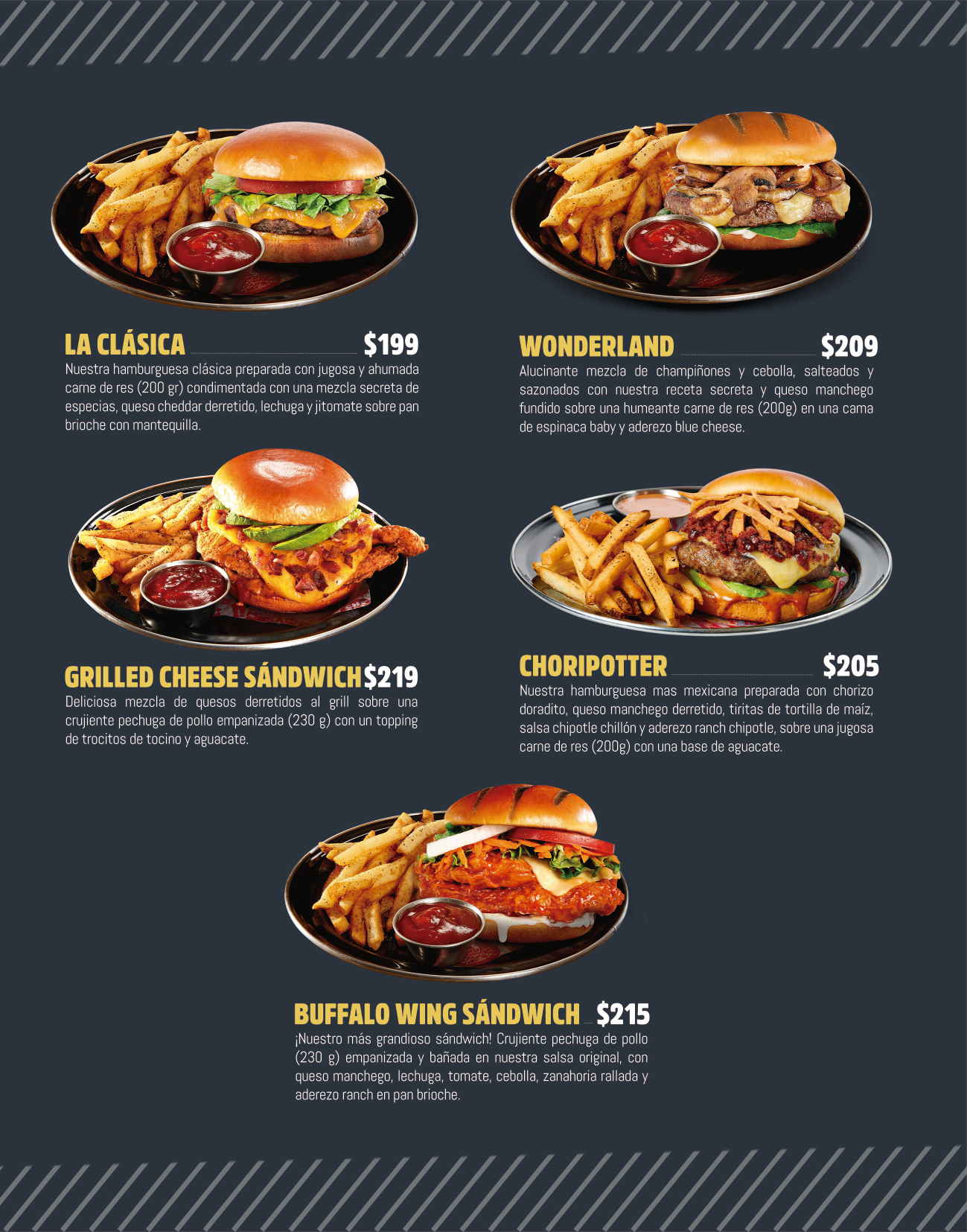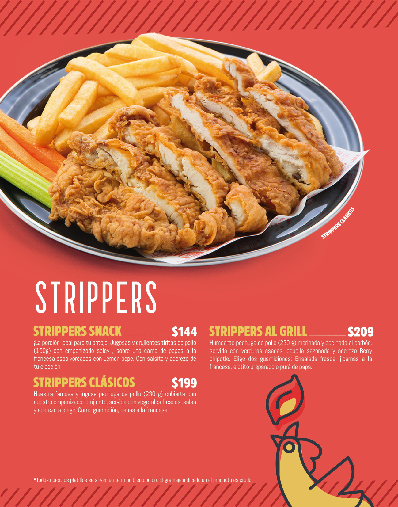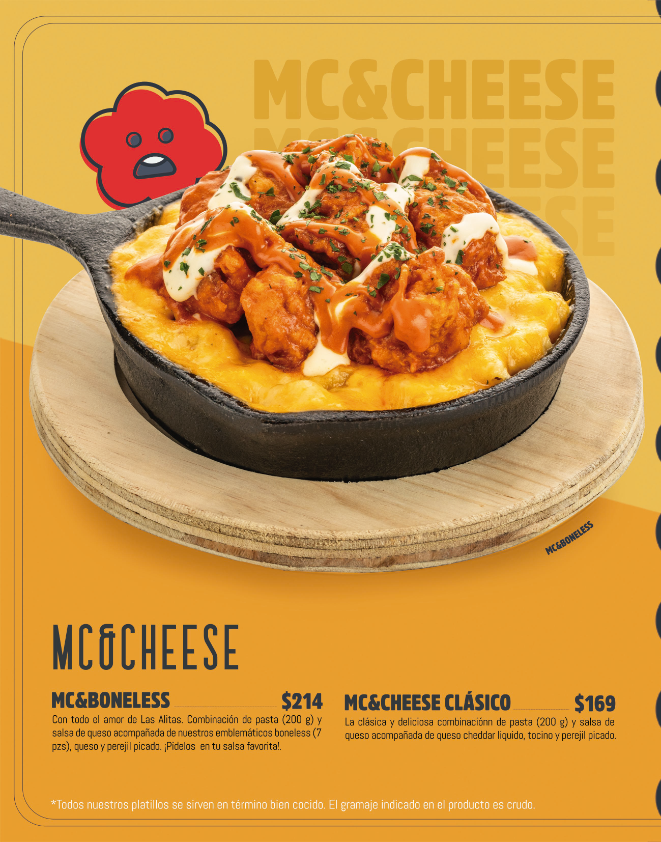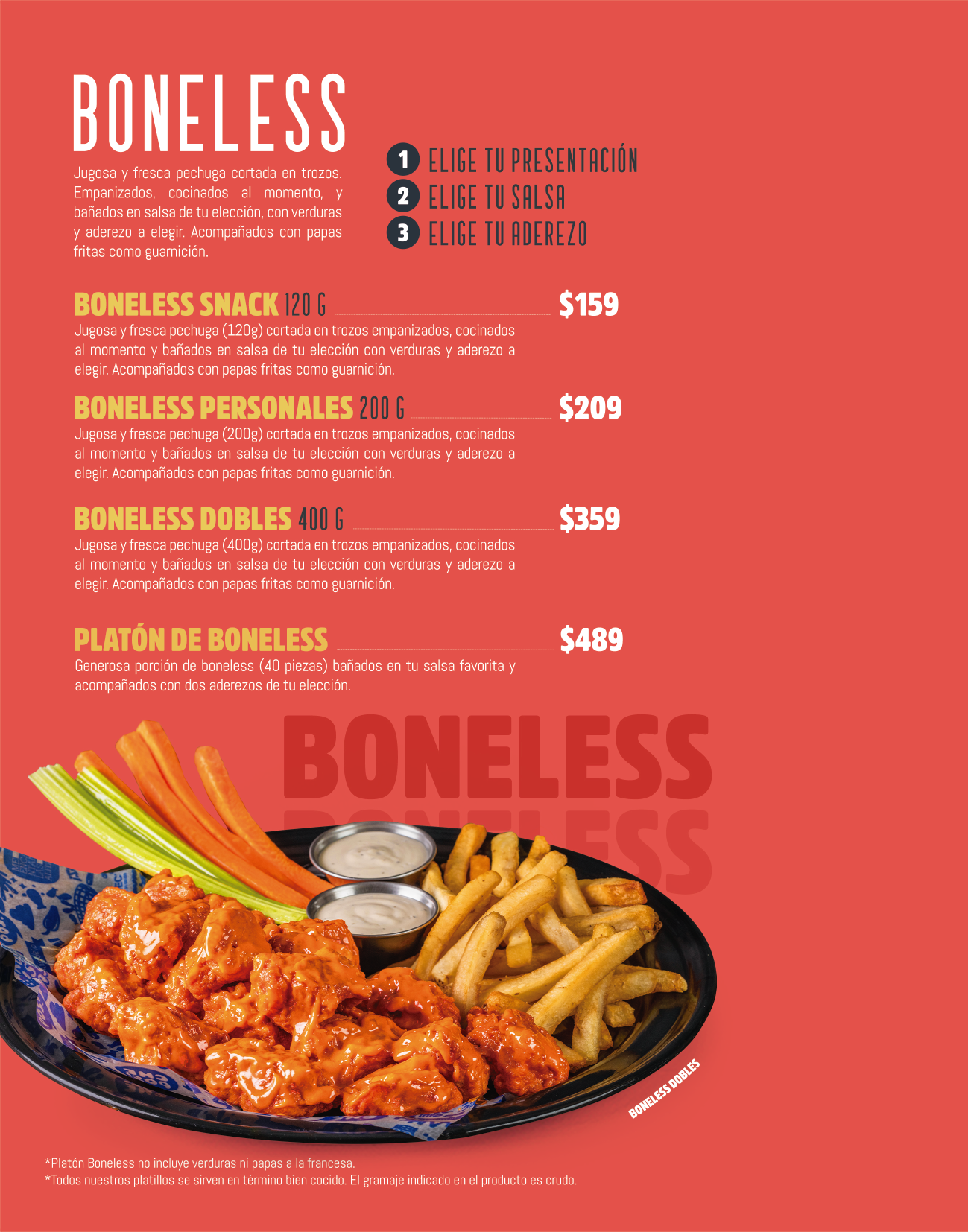 Platón Boneless y Platón Alitas no incluyen verduras ni papas.